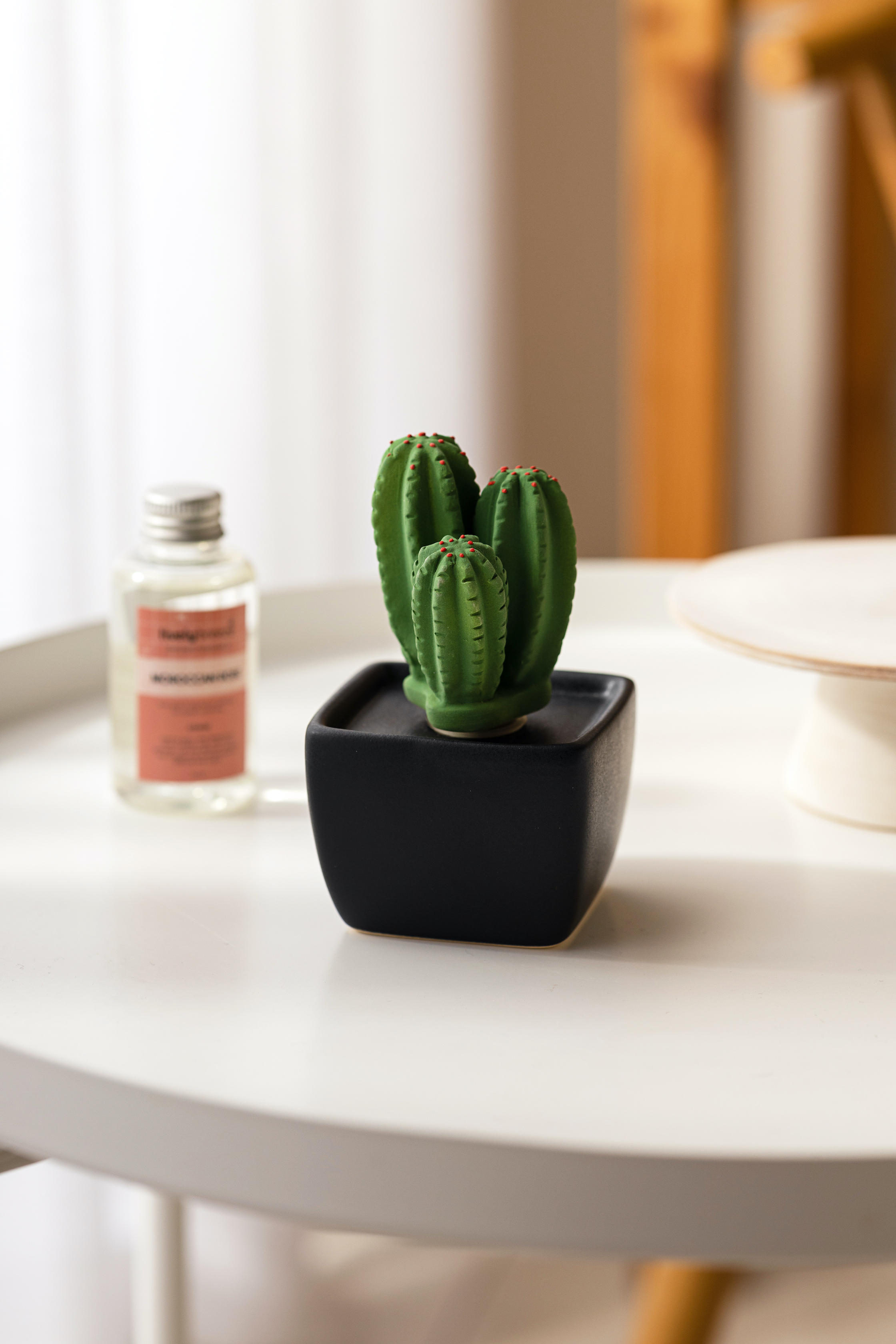 將精油加在底座,香氛精油會隨著棉線擴散到仙人掌本體散發香氣