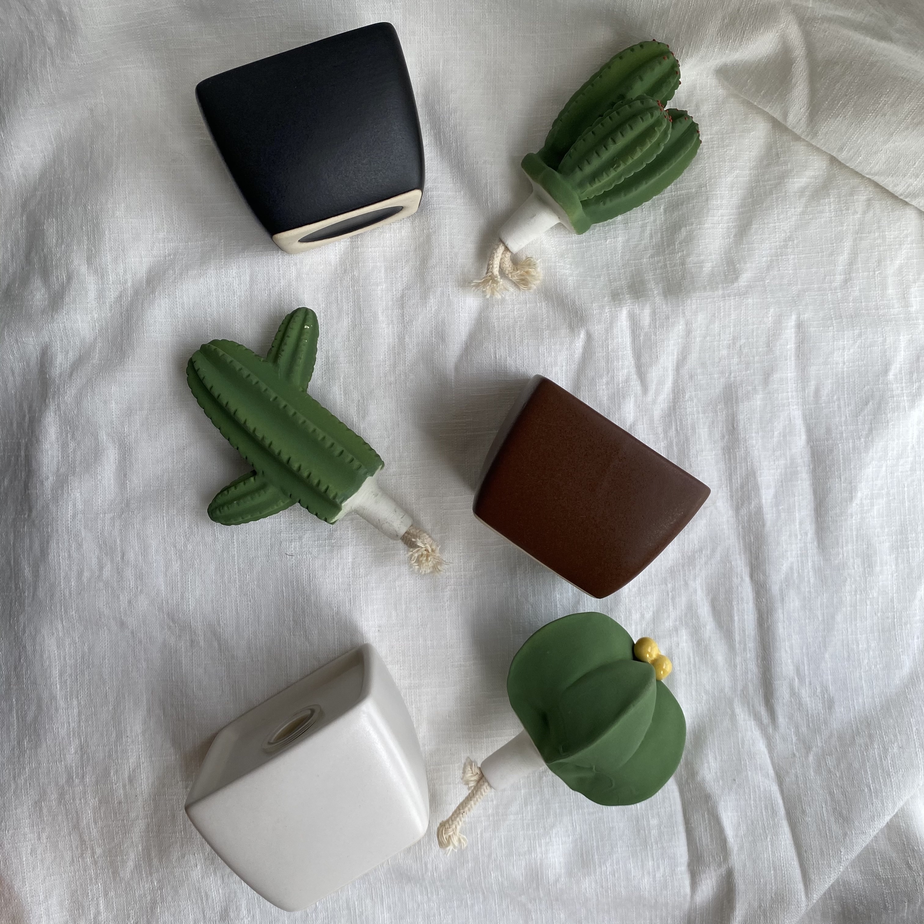 將精油加在底座,香氛精油會隨著棉線擴散到仙人掌本體散發香氣