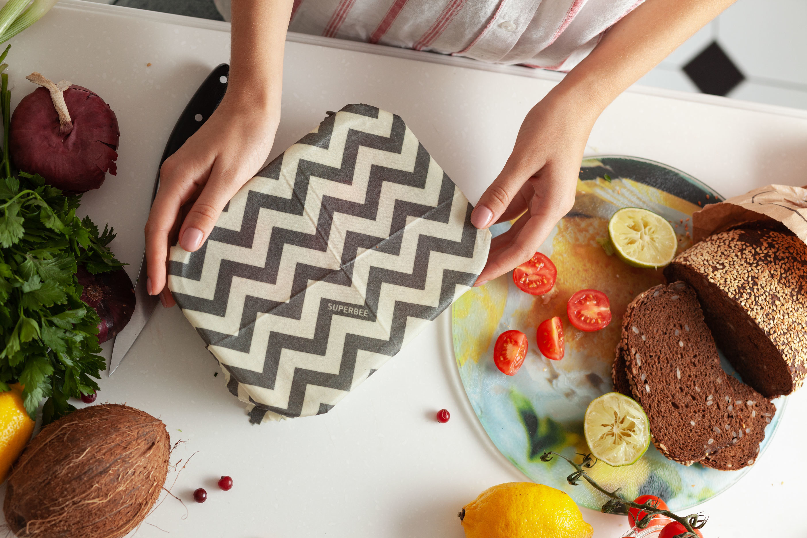 蜂蠟布可取代保鮮膜和塑膠容器的功能,例如:切開的蘋果、檸檬、西瓜、麵包、剩菜、點心、三明治...還有更多你想的到的食物,如同食物保存盒,Superbee蜂蠟布可以幫助你做好分類,打理好每天的食材,也可用來包肥皂或鮮花