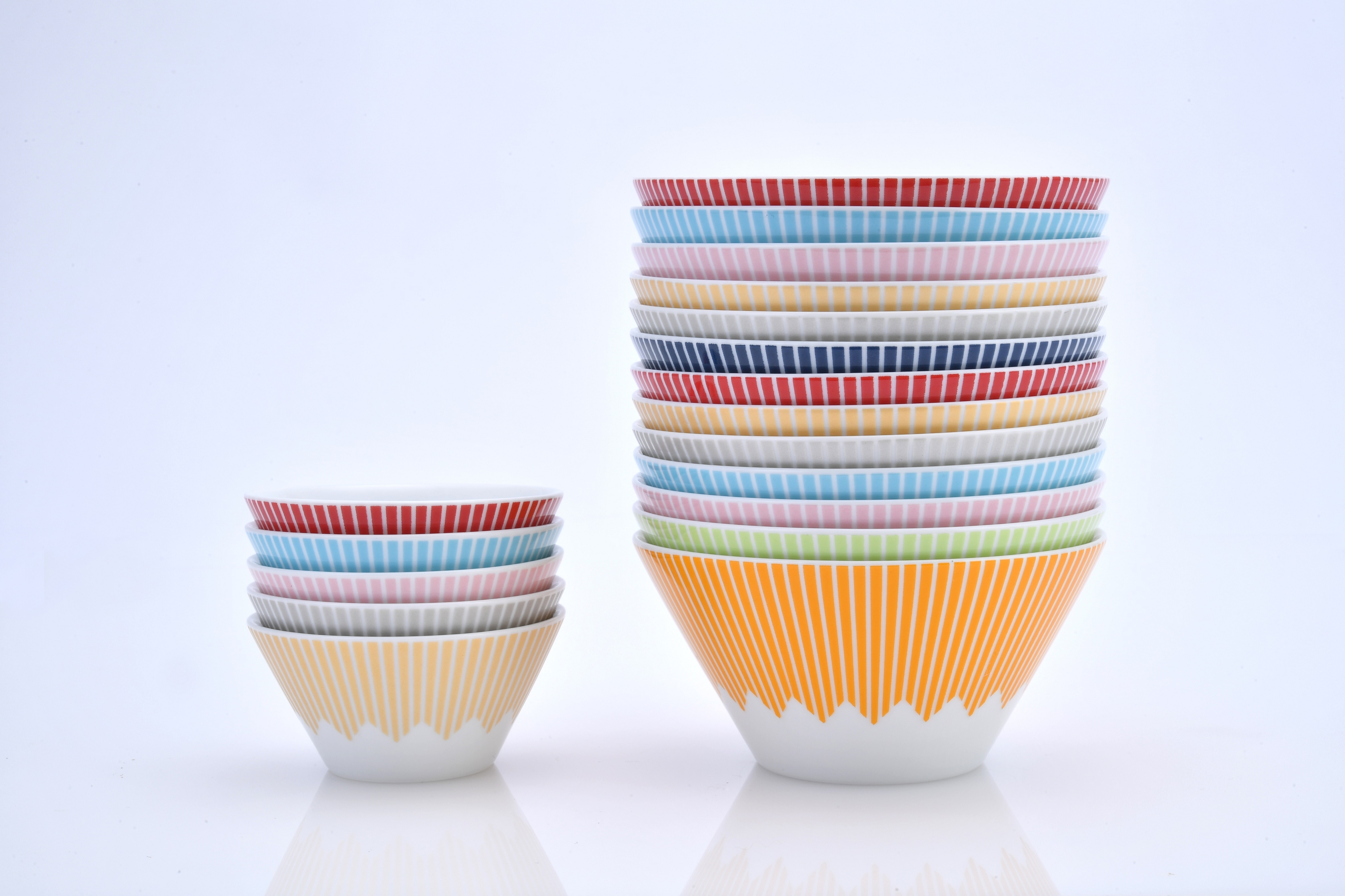 以富士山為靈感,設計出條紋造型搭配上寬下窄的杯型,倒放就像是一座富士山矗立在桌上可做為家中裝飾