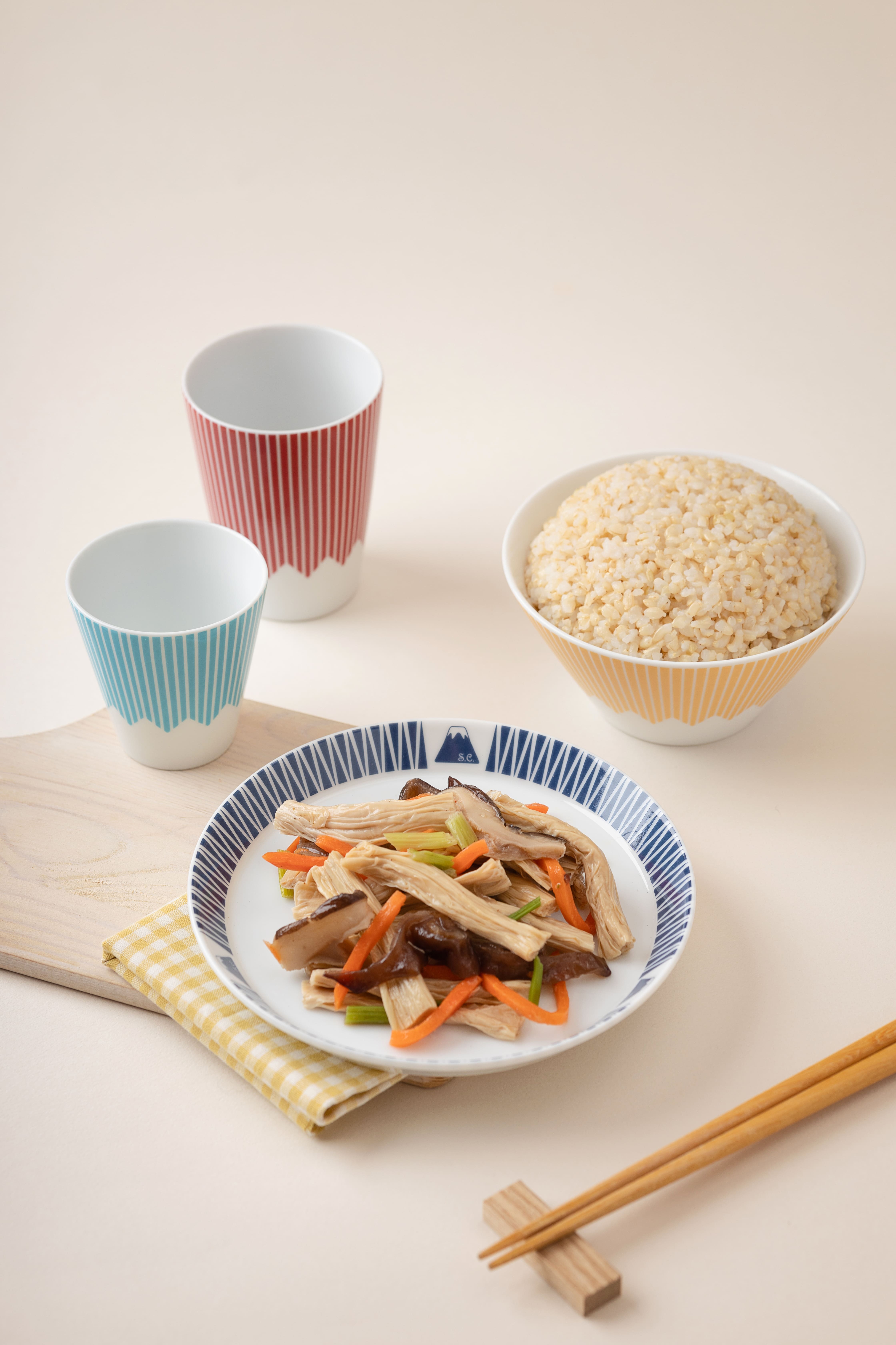 以富士山為靈感,設計出條紋造型搭配上寬下窄的杯型,倒放就像是一座富士山矗立在桌上可做為家中裝飾