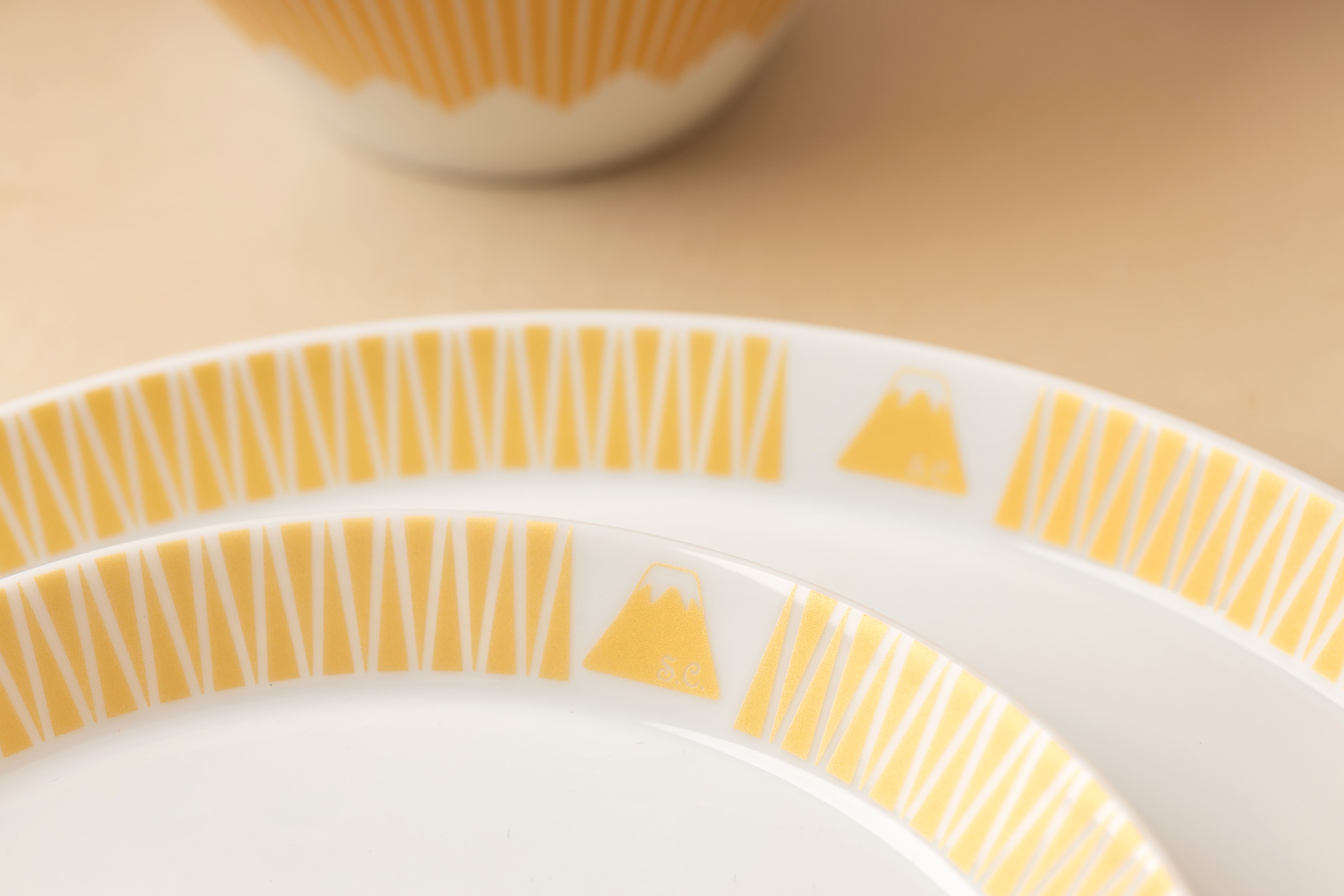 可愛的山形條紋盤上印有富士山