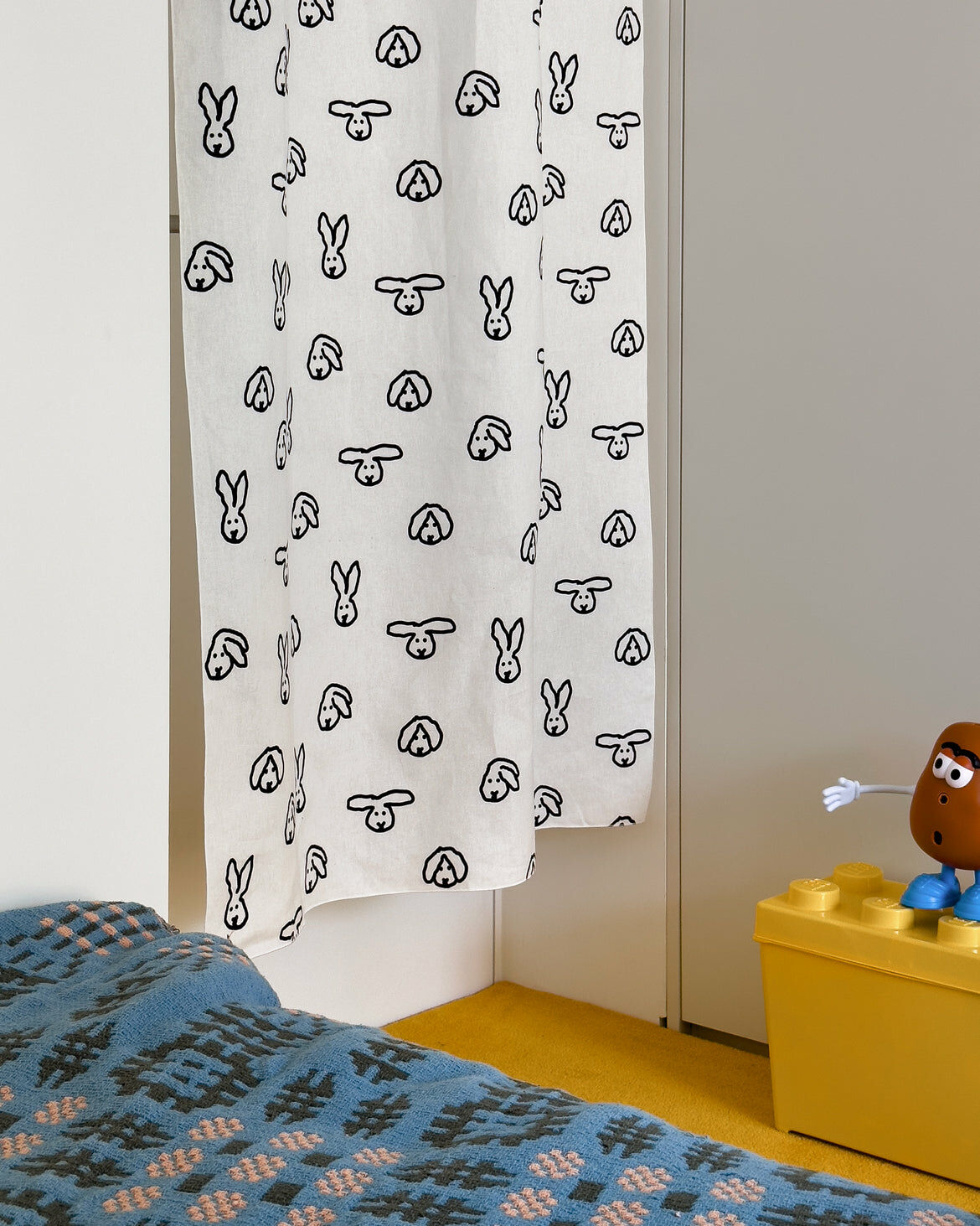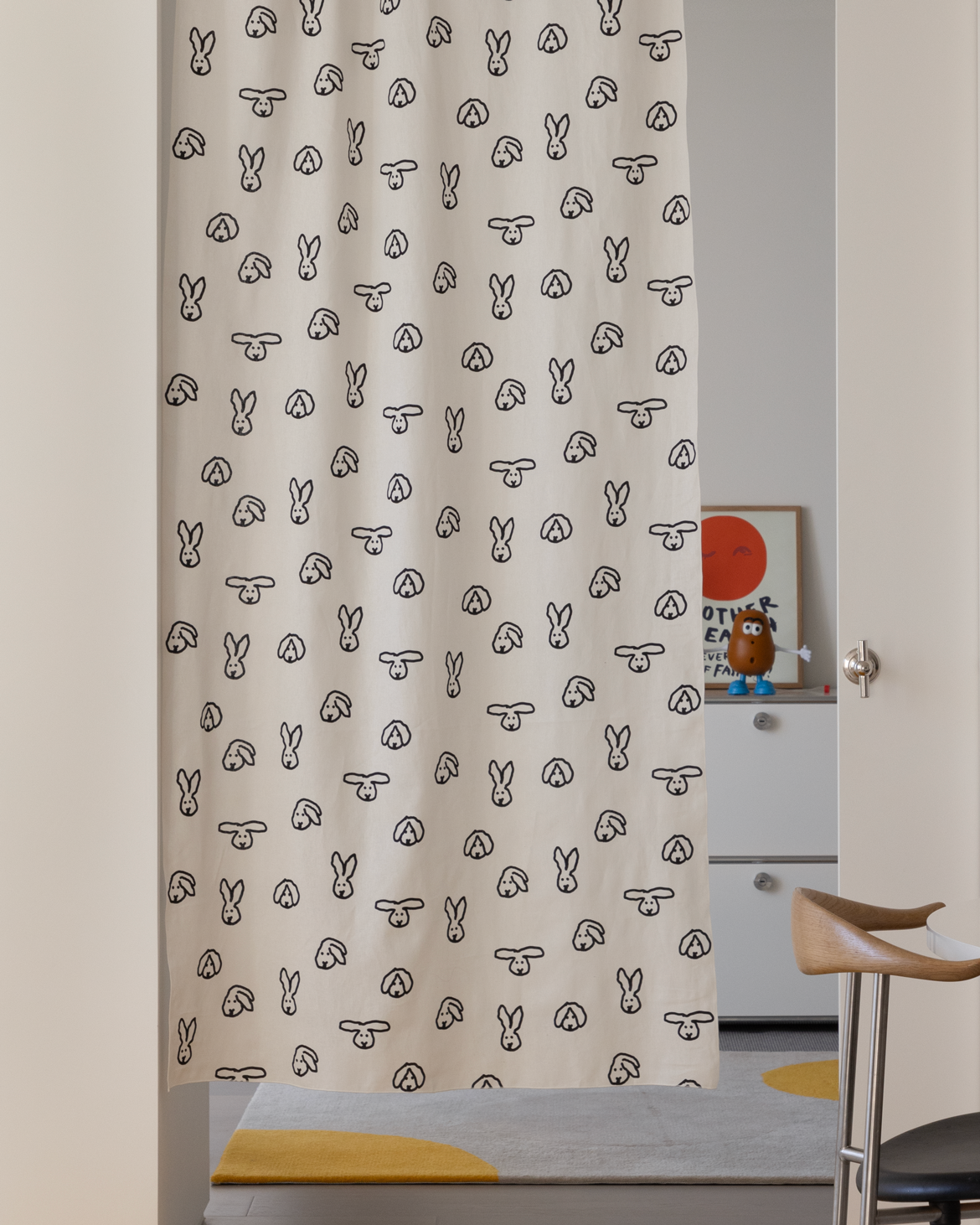 Warmgrey tail 的兔子窗簾採用中間有縫的設計,便於進出