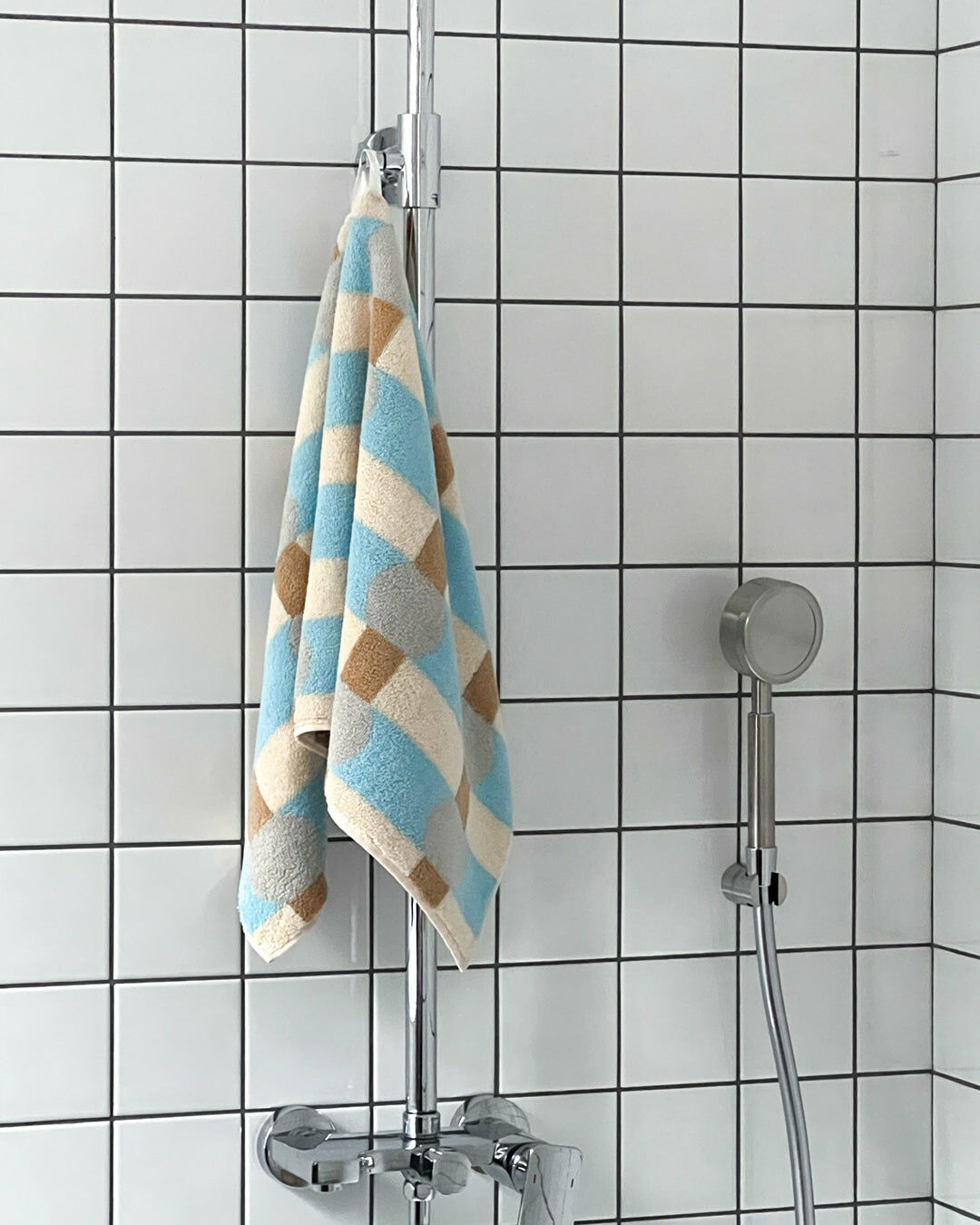 為了呈現精緻的感覺,Warmgrey tail毛巾設計了縱向和橫向的邊緣寬度一致的款式