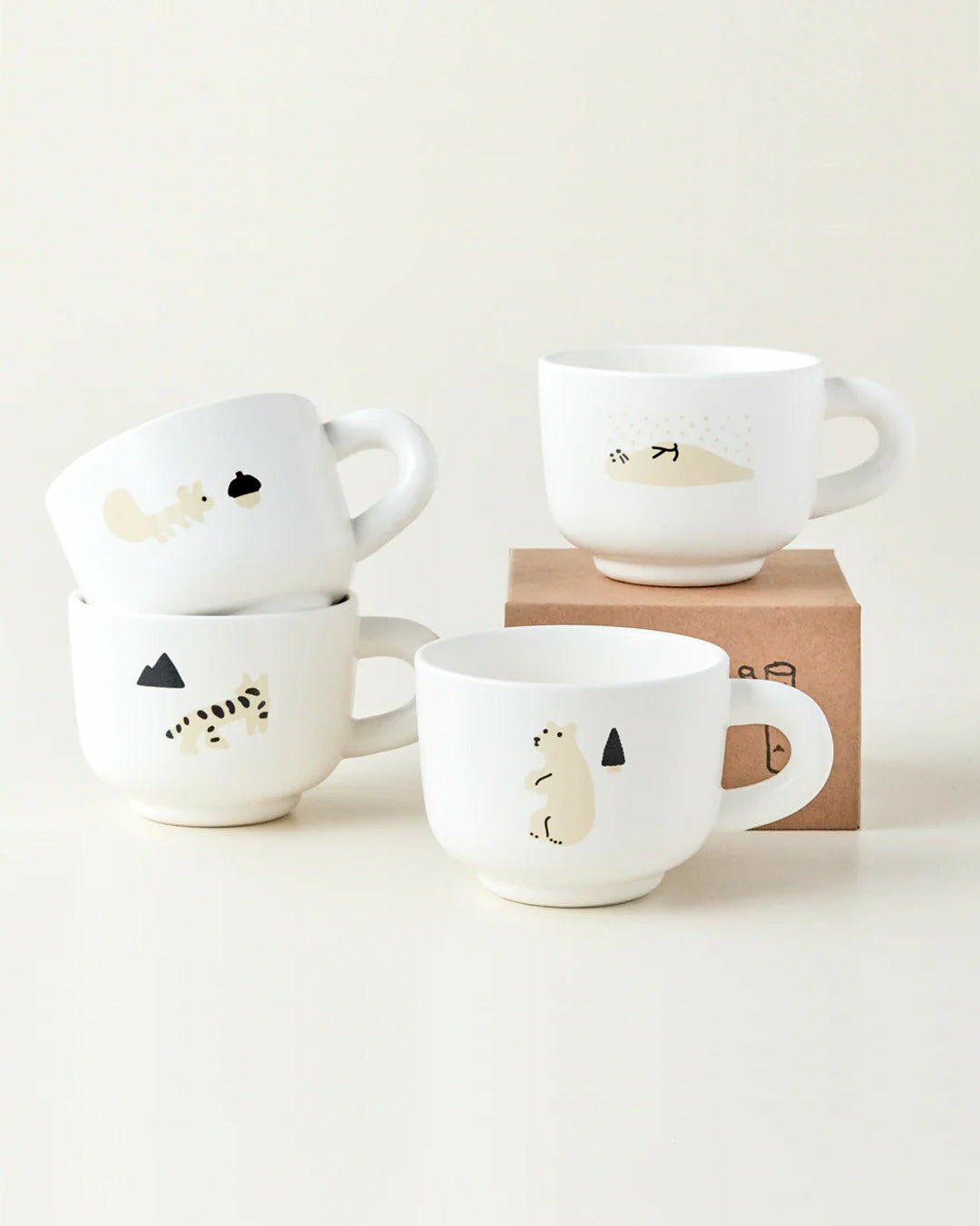 自2017年首次推出以來,一直深受喜愛!四位動物朋友——熊、老虎、海豹和松鼠——被描繪在奶白色的杯子上,各自展現其獨特的魅力。