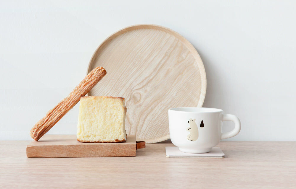這是 Warmgrey tail 和 Flat Point 合作的第二款牛奶馬克杯。手感舒適的粗手柄、厚實的線條和簡潔的造型,再加上象牙色釉料,與廣受人喜愛的插畫相得益彰。