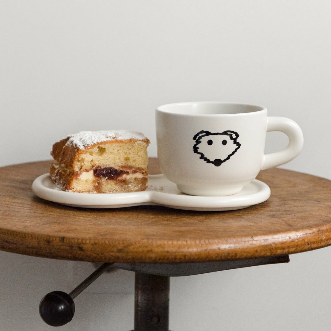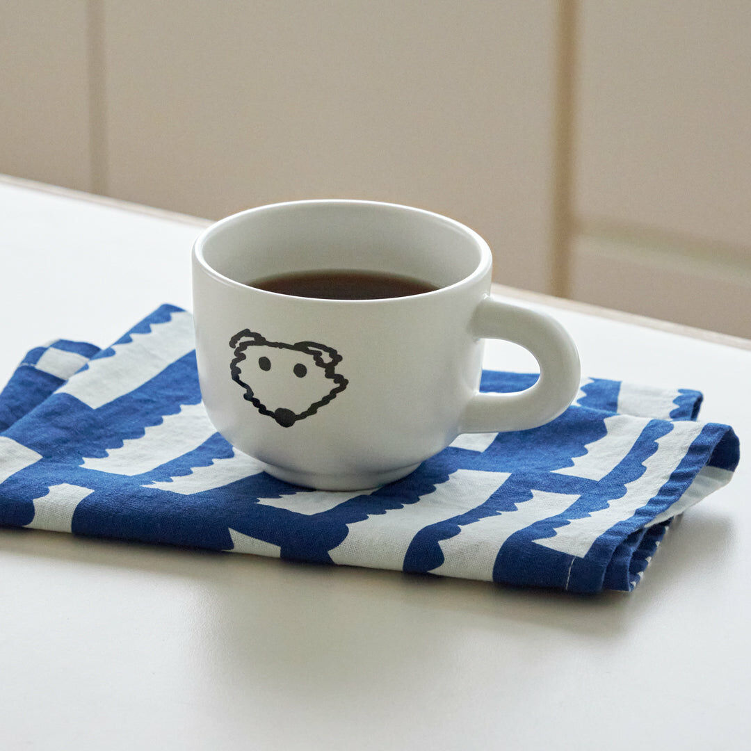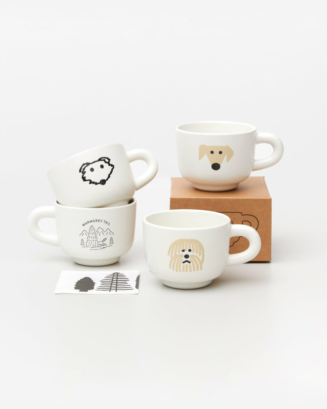 這是 Warmgrey tail 和 Flat Point 合作的第二款牛奶馬克杯。手感舒適的粗手柄、厚實的線條和簡潔的造型,再加上象牙色釉料,與廣受人喜愛的插畫相得益彰。