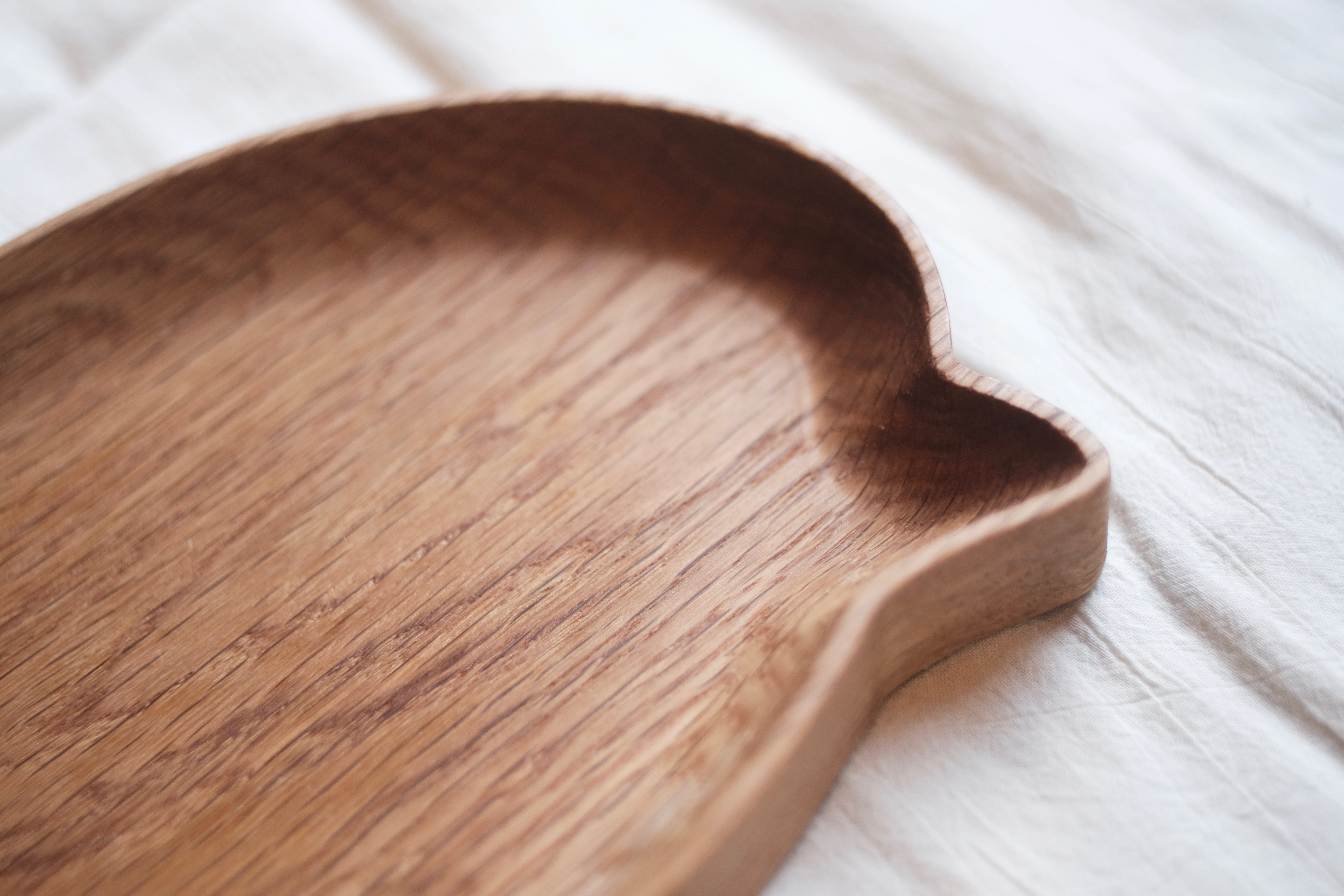 > 餐盤內側設計為滑順的角度,除了表現木頭的圓潤,在使用後清潔上,也將更容易、輕鬆,也同時延長使用壽命